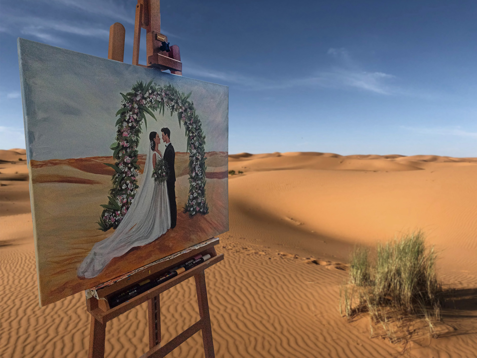 Le live painting de mariage est un moyen unique de capturer l’atmosphère et l’émotion de votre journée spéciale. Je me rends sur place et je peins en direct pendant plusieurs heures, créant l’essence de la scène au fur et à mesure qu’elle se déroule. Après l’événement, je ramène l’œuvre à mon studio pour peaufiner les détails et terminer l’œuvre d’art, qui est ensuite soigneusement emballée et vous est envoyée comme un souvenir intemporel.